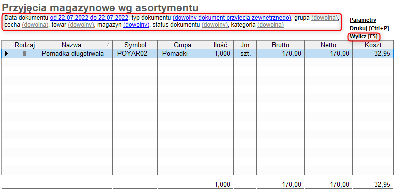 Subiekt GT – Jak wyliczyć zestawienie prezentujące przyjęcia magazynowe według asortymentu?