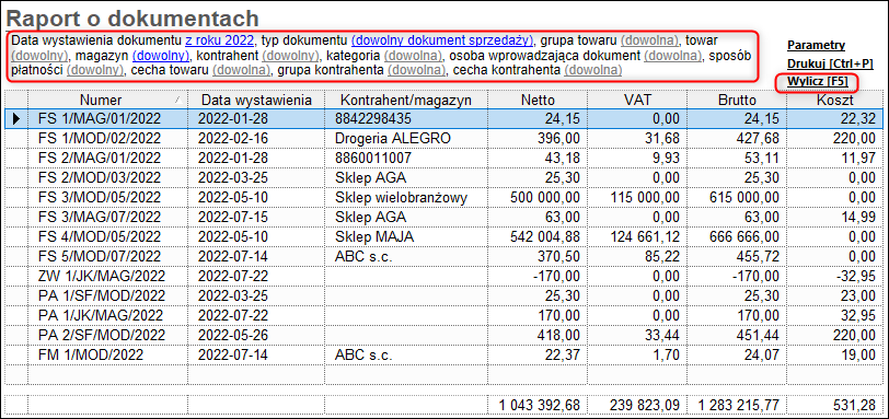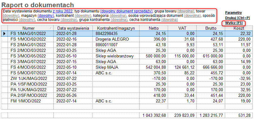 Subiekt GT – Jak wyliczyć zestawienie prezentujące dokumenty handlowe, magazynowe i zamówienia z wybranego okresu?