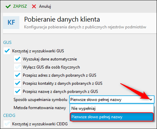InsERT nexo – Jak włączyć uzupełnianie symbolu kartoteki klienta przy pobieraniu danych z GUS?