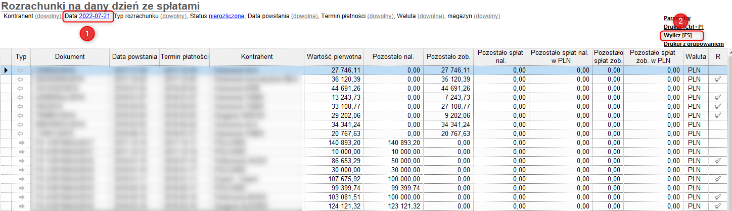 Subiekt GT – Jak wyliczyć zestawienie prezentujące stan rozrachunków na wybrany dzień ze spłatami?