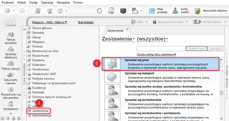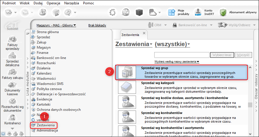 Subiekt GT – Jak wyliczyć zestawienie prezentujące sprzedaż według grup towarowych w wybranym okresie?