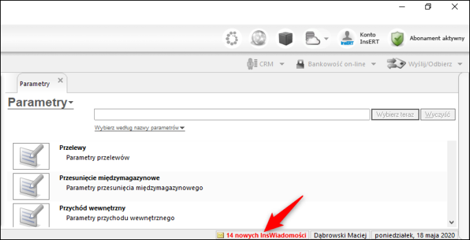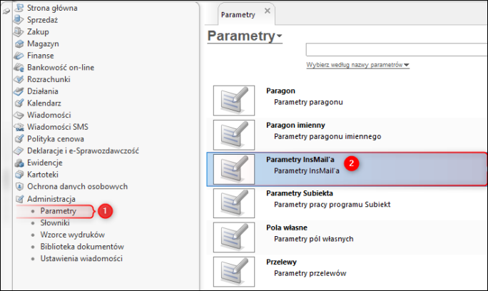 1. Przejść do modułu Administracja – Parametry i wybrać z listy Parametry InsMail'a.