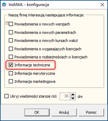 InsERT GT – Jak aktywować informacje techniczne InsMail?