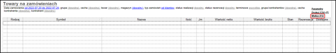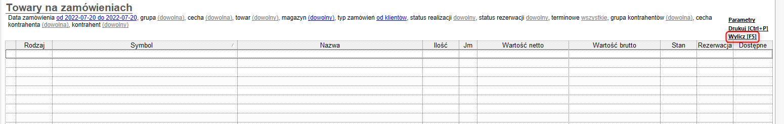 Aby wyliczyć zestawienie prezentujące jakie towary i w jakich ilościach są aktualnie zamówione (ilość, wartość netto i brutto tych towarów na zamówieniach od klientów), należy: