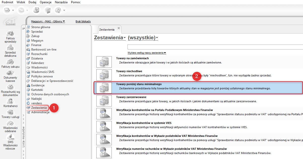 Subiekt GT – Jak wyliczyć zestawienie prezentujące towary, których aktualny stan jest poniżej stanu minimalnego?