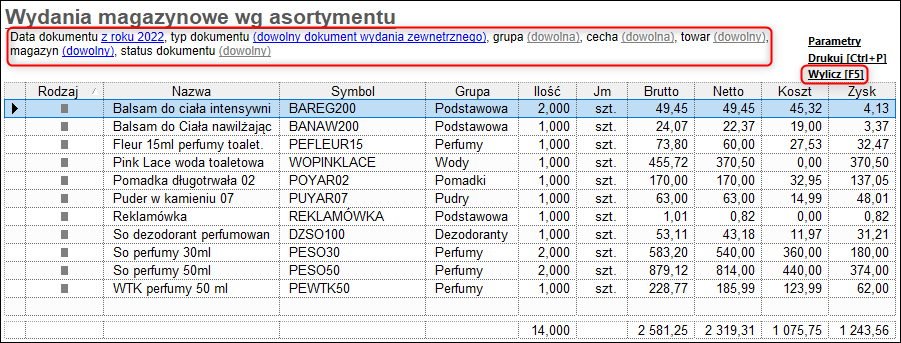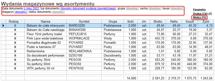 Subiekt GT – Jak wyliczyć zestawienie prezentujące wydania magazynowe według asortymentu?