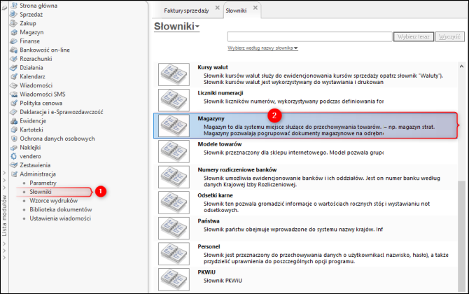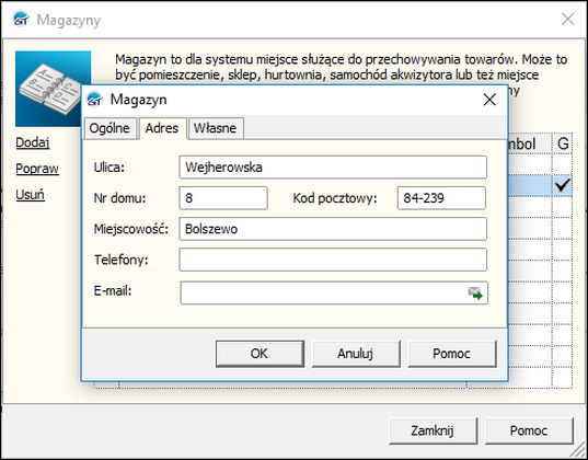 Przy wyborze opcji pobierania danych z magazynu/oddziału, należy zdefiniować miejscowość w słownikach programowych.