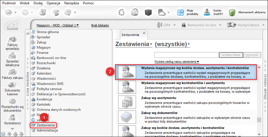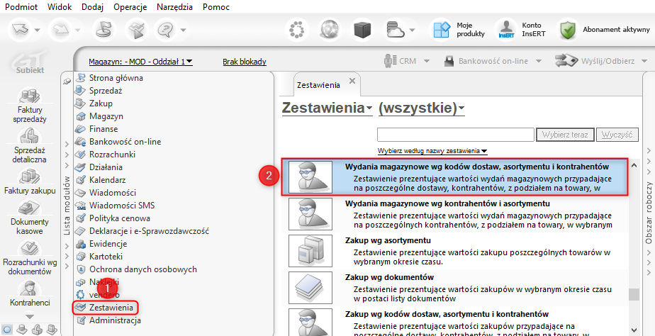 Kategoria: Asortyment, Kontrahenci, Magazyn, Zestawienia