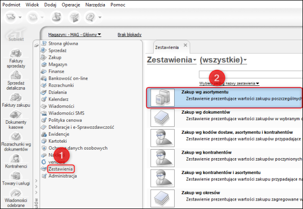 Subiekt GT – Jak wyliczyć zestawienie prezentujące zakup według asortymentu?