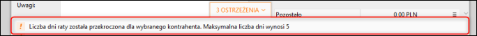 ​Rezultatem będzie ostrzeżenie przy wybraniu większej ilości dni kredytowanych na dokumencie, niż zdefiniowana liczba w kartotece klienta.