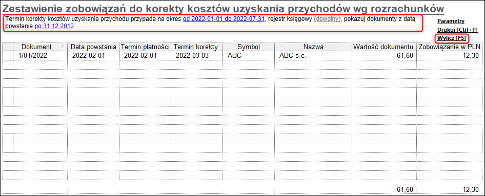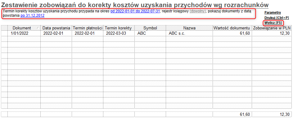 Subiekt GT – Jak wyliczyć zestawienie prezentujące zobowiązania do korekty kosztów uzyskania przychodów według rozrachunków?