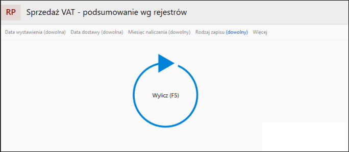 2. W oknie raportu wybrać Wylicz lub F5, aby pobrać dane do wyliczenia.