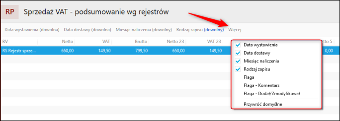 Aby zweryfikować wartość netto ze sprzedaży w zadanym okresie według rejestrów, należy: