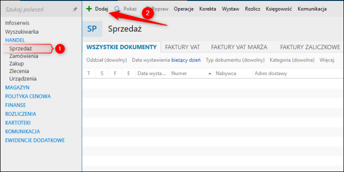 1. Przejść do modułu Sprzedaż i dodać dokument.