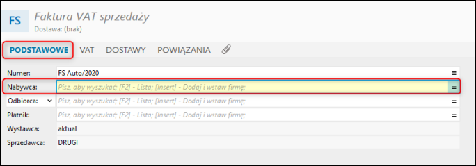 2. Wskazać nabywcę na dokumencie.