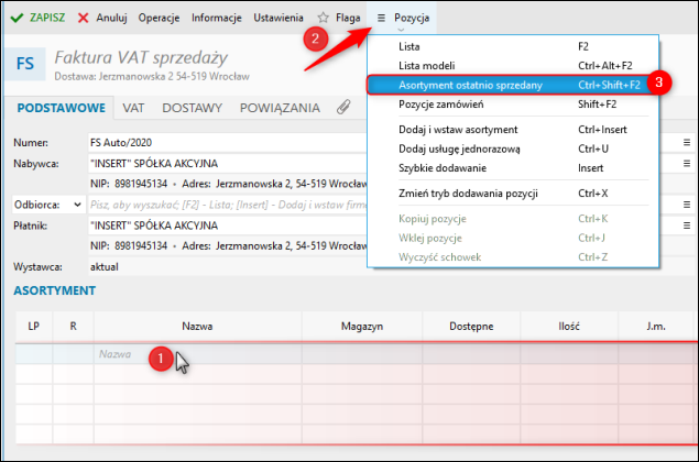 Subiekt nexo – Jak zweryfikować i wstawić na fakturę asortyment ostatnio sprzedany dla danego kontrahenta?