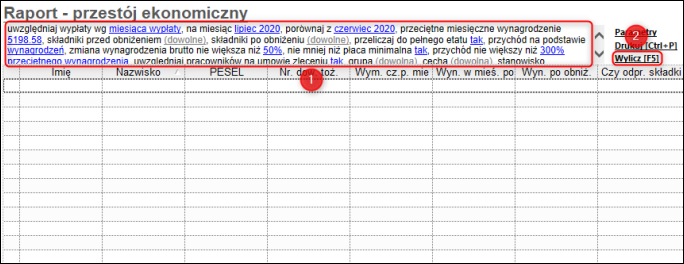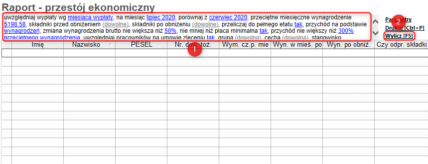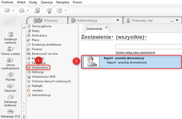 W celu wyliczenia w programie Gratyfikant GT zestawienia prezentującego przestój ekonomiczny należy: