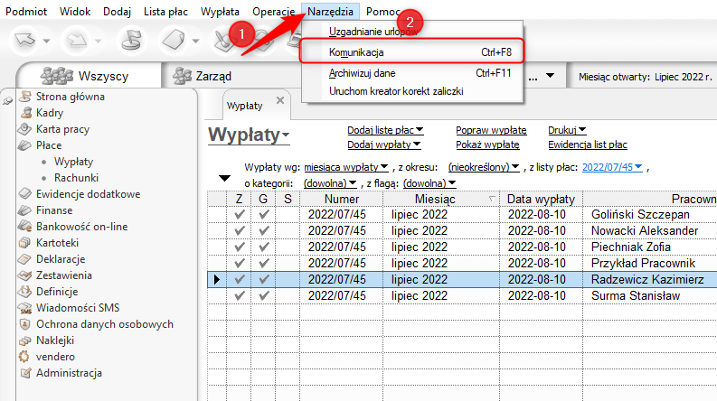 2. Z górnego menu wybrać opcję Narzędzia ​ Komunikacja.​