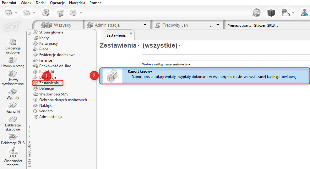Gratyfikant GT – Jak wyliczyć zestawienie prezentujące wpłaty i wypłaty dokonane w wybranym okresie, we wskazanej kasie gotówkowej?