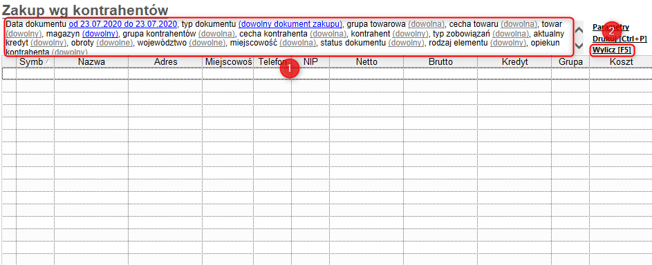 Subiekt GT – Jak wyliczyć zestawienie prezentujące wartości zakupów poczynionych przez poszczególnych kontrahentów, w wybranym okresie?