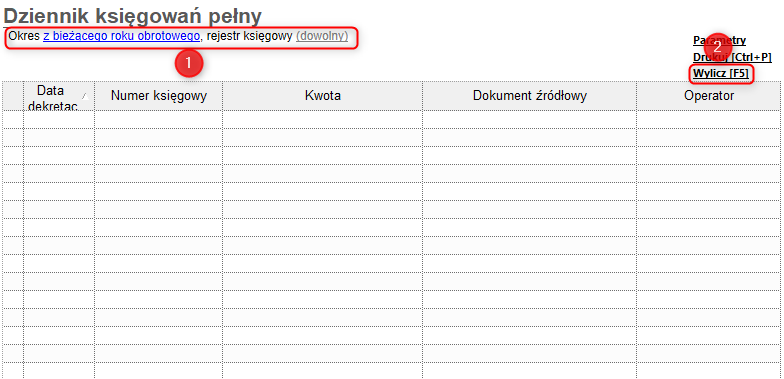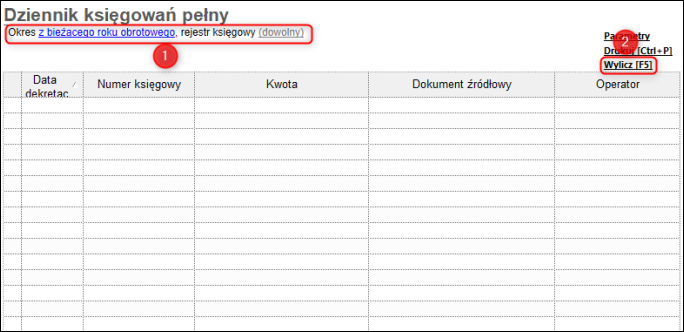 W celu wyliczenia w programie Rewizor GT pełnego Dziennika księgowań należy: