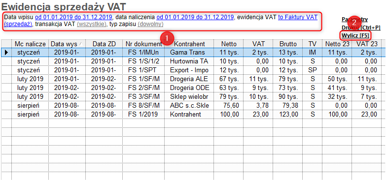 Rewizor GT – Jak wyliczyć zestawienie prezentujące zapisy z ewidencji VAT sprzedaży z podziałem na stawki VAT?