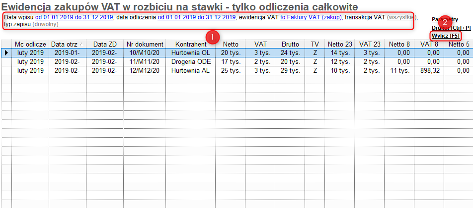 Rewizor GT – Jak wyliczyć zestawienie przedstawiające tylko zakupy zaopatrzeniowe i koszty z odliczeniem całkowitym w ewidencji zakupów VAT z podziałem na stawki?