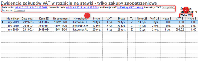 Rewizor GT – Jak wyliczyć zestawienie prezentujące tylko zakupy zaopatrzeniowe zapisane w ewidencji zakupów VAT z podziałem na stawki?