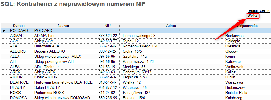 W celu wyliczenie w programie Rewizor GT zestawienia prezentującego kontrahentów z niepoprawnym NIP-em należy: