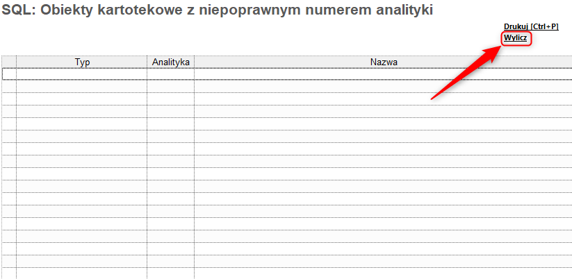 W celu wyliczenia w programie Rewizor GT zestawienia przedstawiającego podłączone do planu kont obiekty posiadające niepoprawny numer analityki należy: