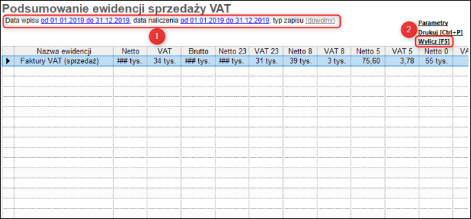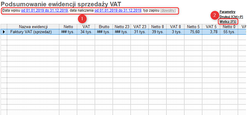 W celu wyliczenia w programie Rewizor GT podsumowania wszystkich ewidencji sprzedaży VAT należy: