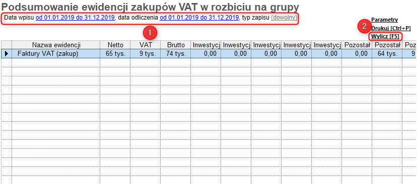 Rewizor GT – Jak wyliczyć zestawienie przedstawiające podsumowanie wszystkich ewidencji zakupów VAT w rozbiciu na grupy?