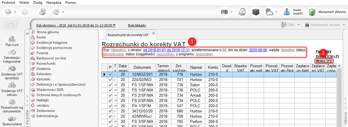 Rewizor GT – Jak wyliczyć zestawienie prezentujące rozrachunki do korekty VAT dla faktur nieopłaconych w terminie?