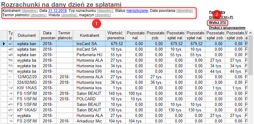 Rewizor GT – Jak wyliczyć zestawienie prezentujące rozrachunki na dany dzień ze spłatami?