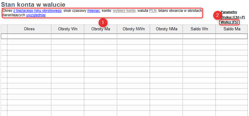 Rewizor GT – Jak wyliczyć zestawienie prezentujące stan konta księgowego w walucie?