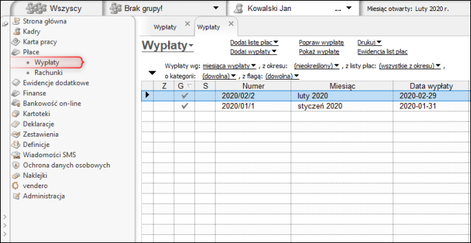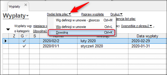 2. Wybrać z górnego menu Dodaj listę płac – Dowolną.