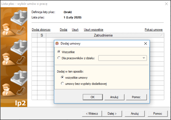 6. Wybrać umowę, której ma dotyczyć lista płac.