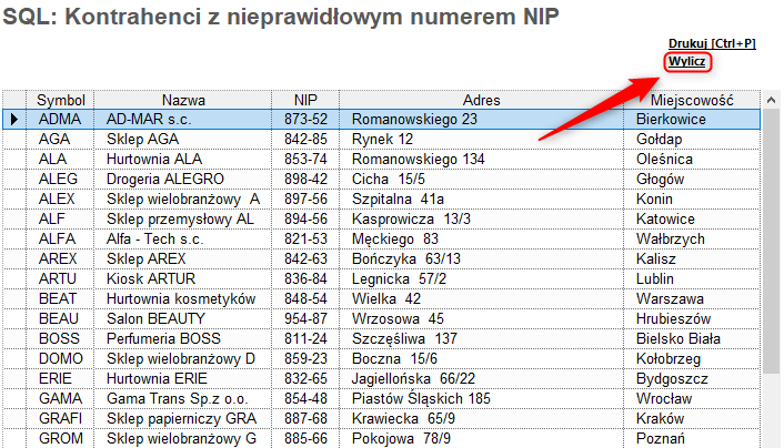 W celu wyliczenia w programie Gestor GT zestawienia prezentującego kontrahentów z nieprawidłowym numerem NIP należy: