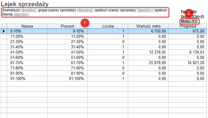 W celu wyliczenia w programie Gestor GT zestawienia prezentującego prognozy obrotu w danym okresie (Lejek sprzedaży) należy: