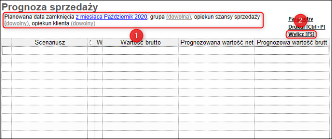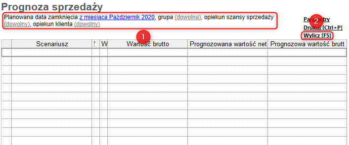 Gestor GT – Jak wyliczyć zestawienie sumujące wartość trwających szans sprzedaży, których data zakończenia wypada w wybranym okresie uwzględniające procent sukcesu (prognoza sprzedaży)?