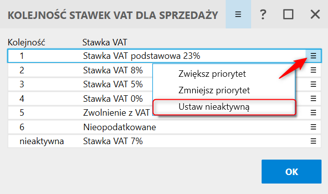 Aby dezaktywować nieużywaną krajową stawkę VAT, należy: