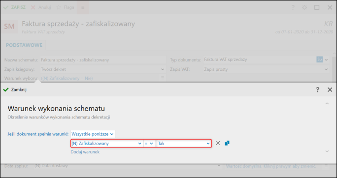 - Warunek wyboru ustawić na (N) Zafiskalizowany = Tak (Fot. 1),