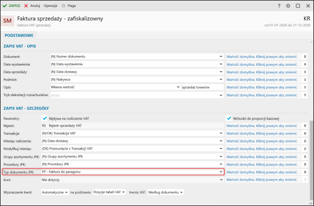 - Parametr Typ dokumentu JPK ustawić na FP – faktura do paragonu (Fot. 3),