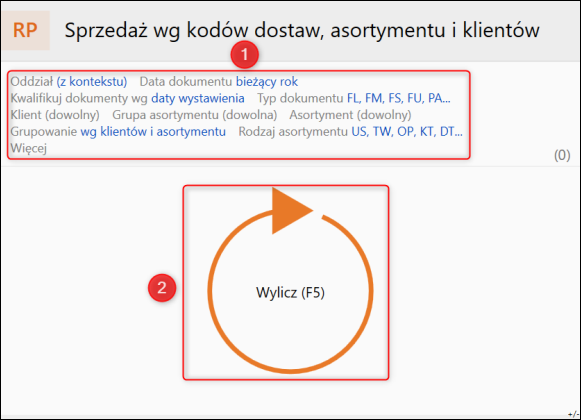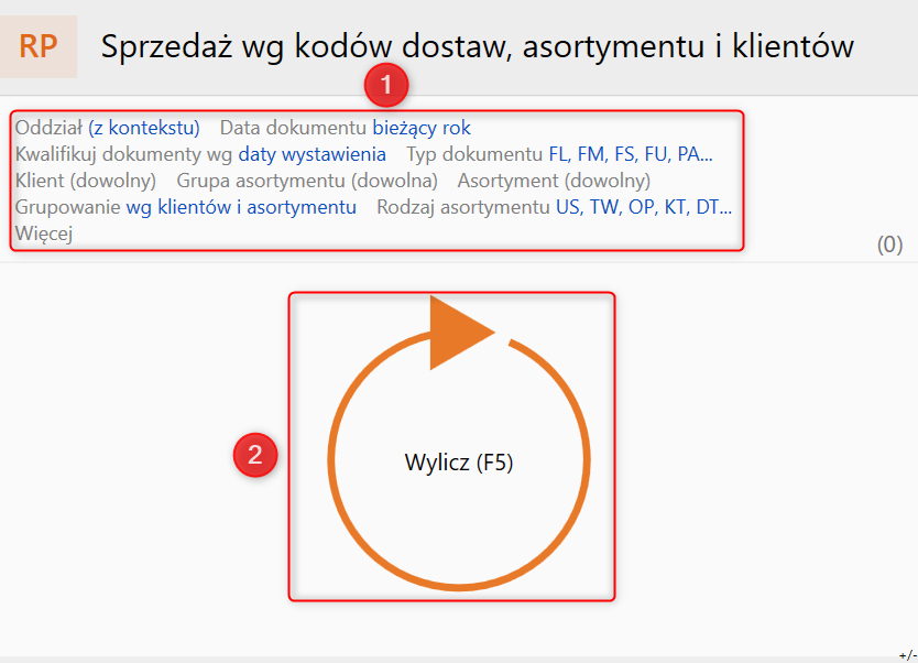 W celu wyliczenia w programie Gestor nexo raportu przedstawiającego sprzedaż wg kodów dostaw, asortymentu i klientów należy: