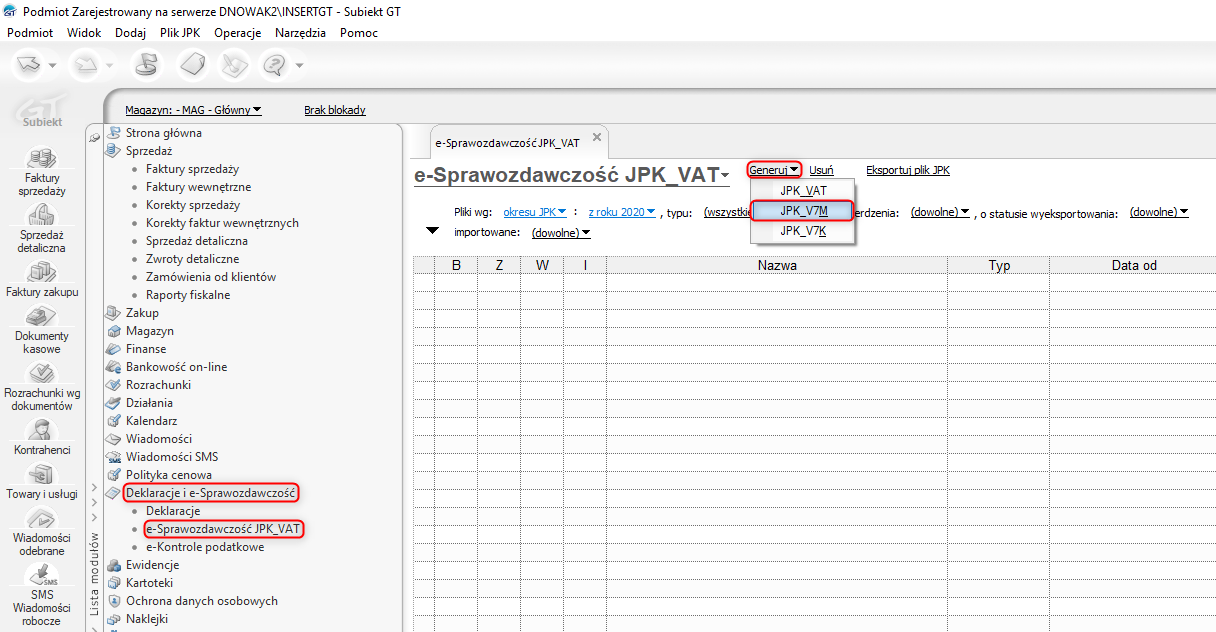 Subiekt GT – Jak wygenerować i wyeksportować plik JPK_V7M przeznaczony dla księgowości?