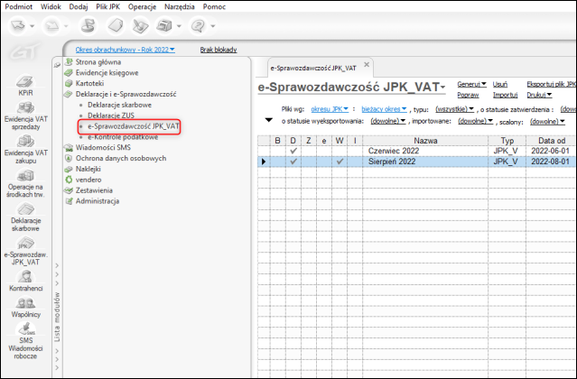 1. Przejść do modułu Deklaracje i e-Sprawozdawczość – e-Sprawozdawczość JPK_VAT.