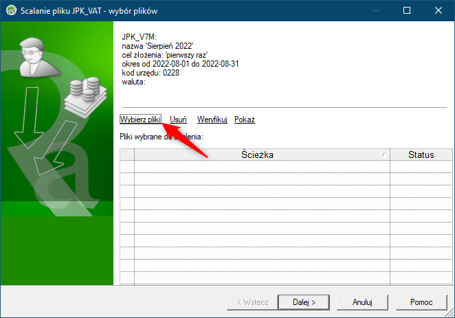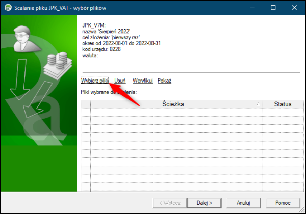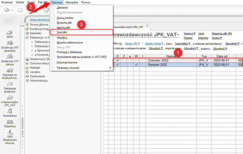 Aby scalić plik JPK z istniejącym plikiem w module e-Sprawozdawczość JPK_VAT w Rachmistrzu lub Rewizorze, należy: