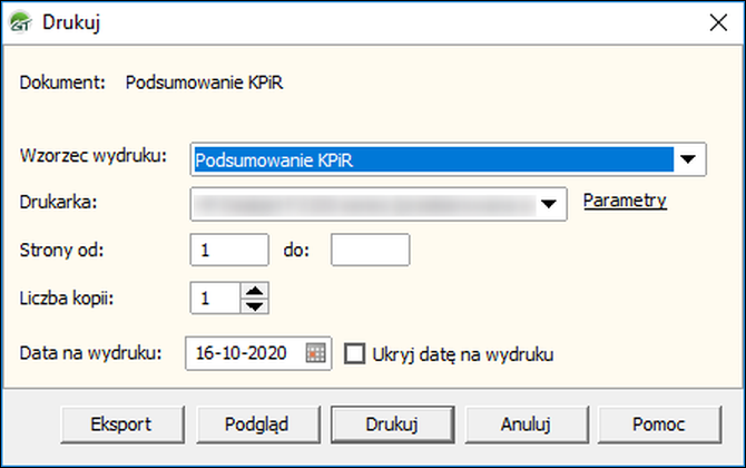 4. W oknie wydruku określić parametry oraz datę wydruku.