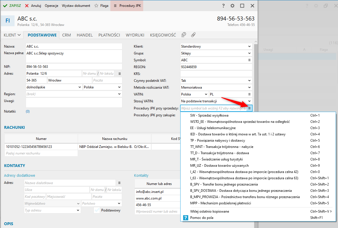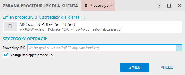InsERT nexo – Jak zmienić domyślną procedurę JPK umieszczaną na dokumencie sprzedaży po wyborze klienta?