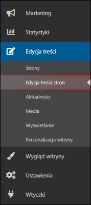 W vendero istnieje możliwość dodania widgetu na stronie, zawierającego dodatkowe informacje firmy. W tym celu należy przejść do modułu Edycja treści - Edycja treści stron.